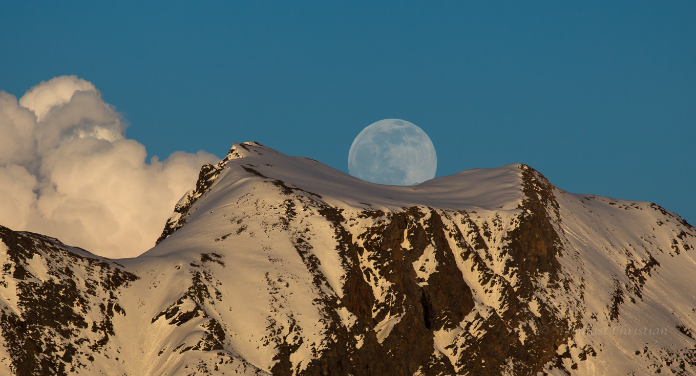 I anxiously awaited for the nearly full moon to pop over the peaks not knowing exactly where it would occur. Then I heard a whisper from my son who who said "Look over there, can you see a faint light coming from the left side of the peak?" And wow, it was faint at first but then it quickly turned into a bright golden glow. But then we realized that the clouds were too thick to see the full Moon but instead we were treated with this unique colorful globe rising over the jagged peaks. My son shouted out, "This is one of the best days of my life!", as we were snapping off shots as fast as our cold fingers would allow. Definitely a great moment to remember!
