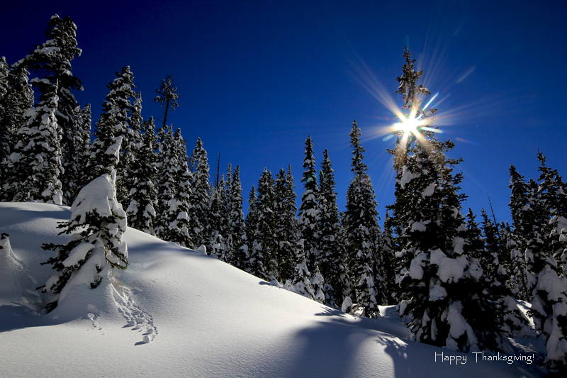 We were blessed with an early snow storm which dumped over 3' of fresh powder on our mountains (San Juans). Happy and blessed Thanksgiving!