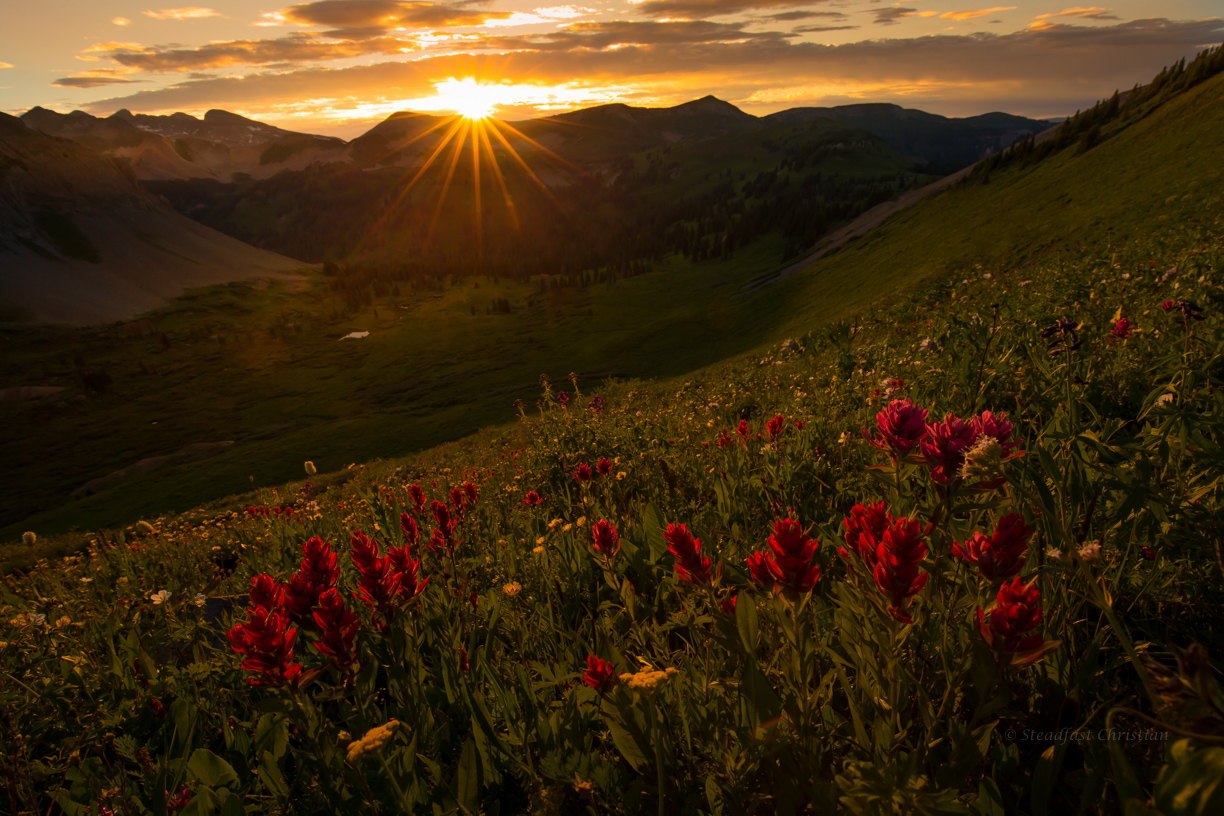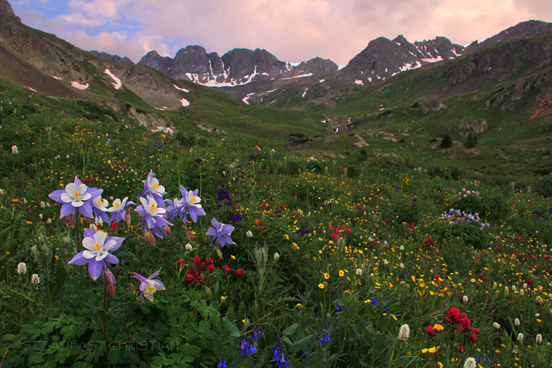 Had the opportunity to run up to American Basin located in a remote region north east of Silverton, CO in the rugged San Juan Mts. It was a bumpy ride in there but well worth it. The lower fields were carpeted with giant Columbines mixed with every other wildflower known to man. This is definitely a special place and to think we pretty much had it to ourselves...