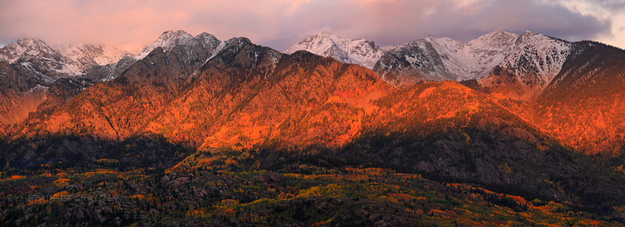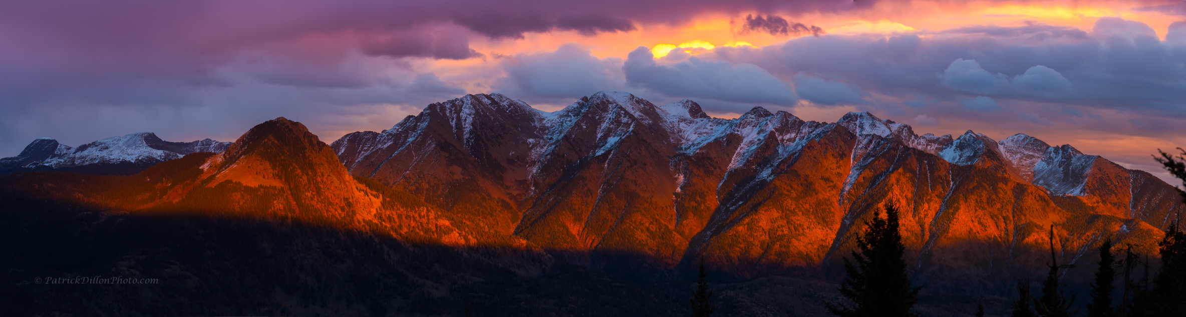 Photo captured on a cloudy day late in the evening. I had given up all hope for catching a sunset shot when the clouds broke exposing just a small window highlighting a little section of the East Needles located in the San Juan Mountains of Colorado.